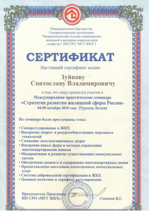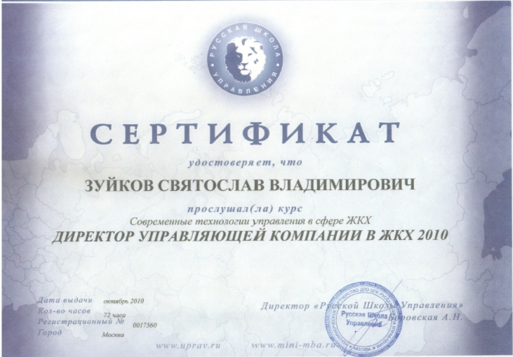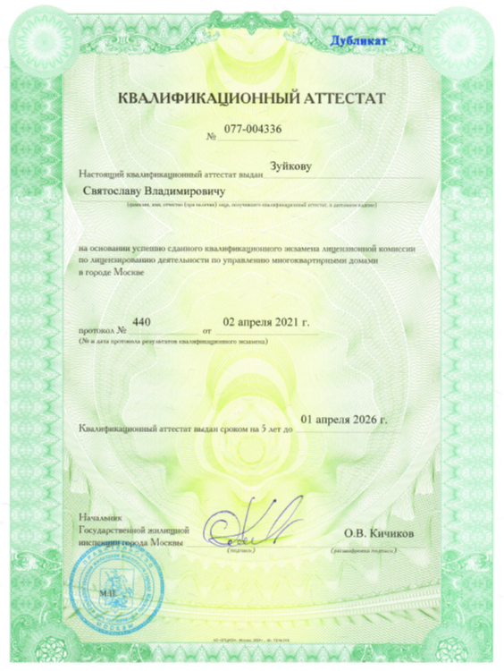 В 2024 году я поступил в Российский Государственный Университет Туризма и Сервиса на магистратуру по направлению «Инновационные технологии сервиса в жилищно-коммунальном хозяйстве». Это очередное высшее образование я получаю с целью углубления знаний и повышения квалификации в сфере ЖКХ, чтобы стать еще более компетентным специалистом и внедрять современные технологии в управление многоквартирными домами.